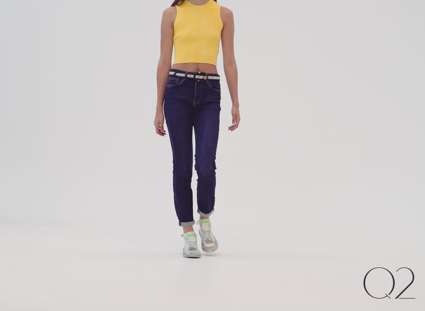 - Look Urbano y Fresco (Como en la foto): Combínalos con un Top de punto amarillo (cropped) y nuestras Zapatillas con brillantes y detalles neón. Añade un cinturón de diseño para marcar la cintura.